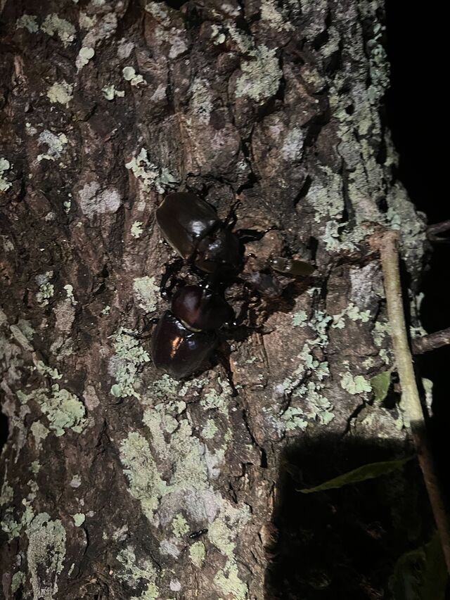 カブクワの幼虫は土や朽木の中で過ごしています。